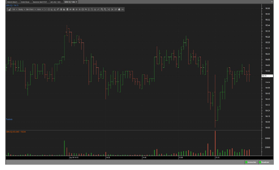 This chart type is the most common way to display data for analysis. Open, high, low, and close prices are shown for the time increment represented by the bar.
