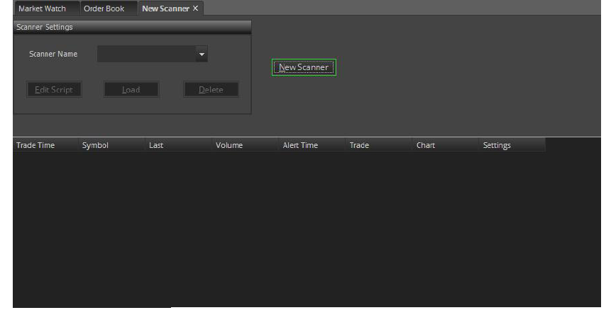 - The scanner gets loaded in the list of scanners created by user. User can select the scanner and click Load button to start a scanner. Scanner allows for one symbol per new line.The scanner will take several moments to load the historic data into memory; therefore this start-up task shouldbe run prior to the market opening.